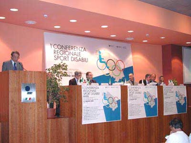 A questo mondo la Regione Marche ha dedicato la 1a Conferenza regionale sport disabili, svoltasi in Ancona presso la sede della Federazione italiana gioco calcio.