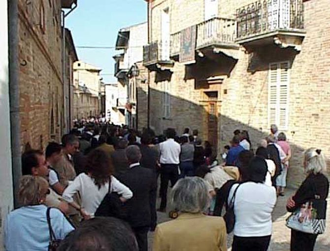 La cerimonia religiosa, un breve saluto delle autorità e infine l'applauso deciso e liberatorio di tutti all'uscita del feretro dalla piccola chiesa. Volti sfigurati dal dolore, sguardi sbigottiti e più spesso rivolti al suolo, occhi traboccanti lacrime. Dai più anziani ai più giovani, dalla gente di Ortezzano a tanti ignoti, da qualche personaggio importante al più sconosciuto cittadino venuto da chi sa dove.