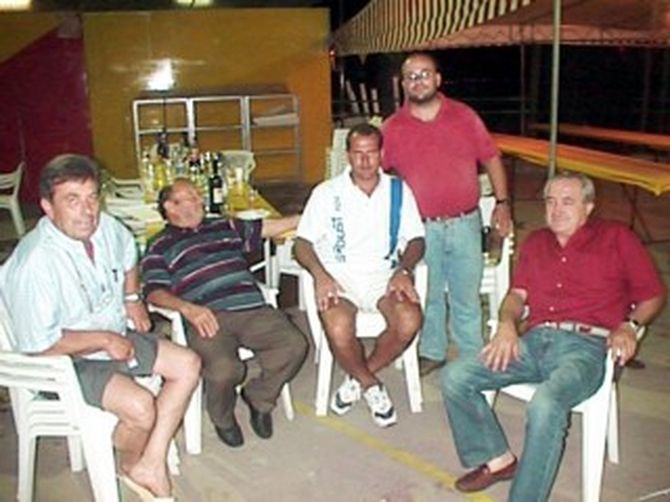 Menù di pesce per la serata, probabilmente a Carassai sono tutti sazi di salsiccia, ottimo vino bianco fresco, tiramisù della "casa", cocomero, caffè e l'immancabile mistrà che, anche se spacciato come ammazza caffè o come ottimo digestivo, nessuno rifiuta.