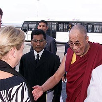 L'aeroporto di Fiumicino ha accolto questa mattina il Dalai Lama, in visita in Italia per quattro giorni. "Sono felice di essere a Roma, qui ho veramente tanti amici", queste le sue prime ed uniche parole, appena sbarcato da un volo di linea Lufthansa proveniente da Francoforte, accolto dagli onorevoli Gianni Vernetti e Pietro Folena, del Gruppo interparlamentare Italia-Tibet.