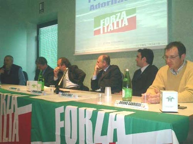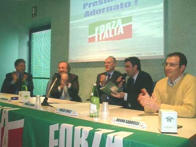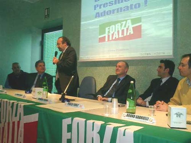 Prima di passare la parola a Adornato, termina il giro di presentazione, lOn Scaltritti: Sono veramente felice per questo momento che ha un valore particolare, primo perché cè un tavolo con una filiera di FI, di cui vado profondamente fiero, secondo è la presenza del Presidente Adornato, che è una persona preziosa che ha aiutato a definire la costruzione del nostro pensiero e della carta dei valori, presentata e diffusa allanniversario. Alla luce di questi valori, in circa una settimana abbiamo trovato laccordo per proporci allelettorato, cosa che non ha fatto la sinistra che ha impiegato più di un mese per la soluzione definitiva, con un candidato di Rifondazione Comunista imposto dallalto, che non ha ancora trovato convergenza sui loro valori e programma, fatto di parole vuote e senza un progetto dintervento concreto per la Provincia, senza priorità.