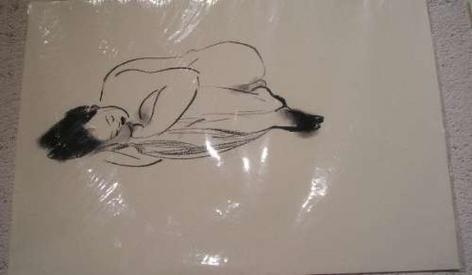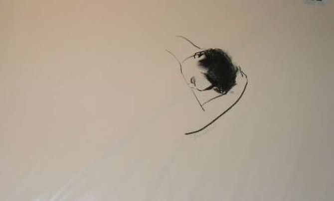 Disegni sospesi, su supporti diversi e con tecniche pittoriche che cambiano di volta in volta, ma non varia il soggetto, questa figura femminile solitaria che ricorre, presa in momenti di abbandono, di sonno e di veglia, con colori cupi ma mai oppressivi, anzi rasserenanti, come serene sembrano le figure ritratte con segni forti, decisi, ma che suggeriscono più che rappresentare.
