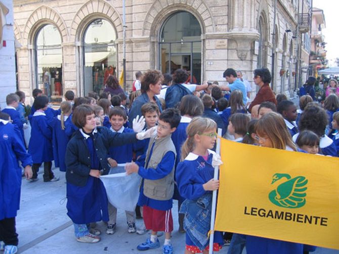 Con grande entusiasmo i piccoli si sono recati verso le aiuole di piazza Fazzini e di corso Mazzini per rendere concreto il progetto di Legambiente dal titolo Puliamo il mondo.