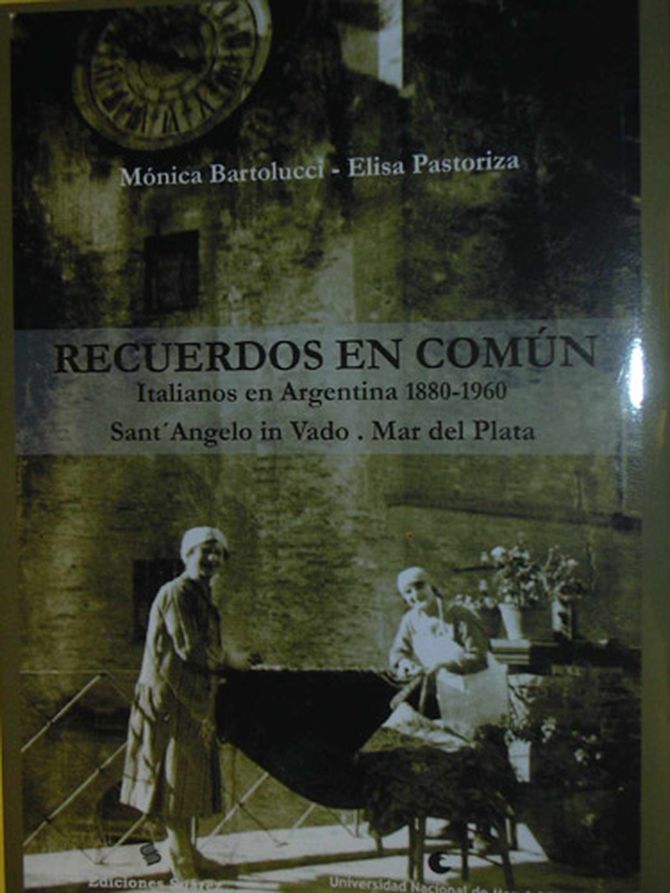 Lo scorso 20 dicembre presso i saloni della Societá di Mutui Soccorsi G. Garibaldi (che ha molto a che vedere con la storia stessa di questa citta) si é svolta la cerimonia di presentazione del libro sull’immigrazione di Sant’Angelo in Vado (PU) a Mar del Plata dal titolo “Ricordi in Comune . Italiani in Argentina 1880- 1960. Sant’Angelo in Vado - Mar del Plata” dalle dottoresse Monica Bartolucci (di origini pesaresi) ed Elisa Pastoriza, entrambe note ricercatrici dell’ufficio Storia della Facultad de Humanidades.