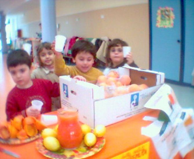 I bambini, con il contributo delle famiglie, hanno acquistato, le arance della salute, preparando con esse una maxi spremuta preceduta da una lezione sulle proprietà nutrizionali e salutari degli agrumi, degustata successivamente dai bambini di ogni classe e sezione. Il ricavato dell’acquisto delle arance verrà utilizzato dall’Airc per finanziare la ricerca sul cancro.