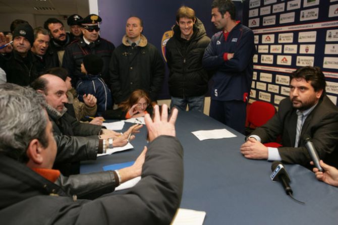 Dopo 80 minuti di attesa il dottor Santilli si presenta in un clima che definire bollente, nonostante il freddo, è dire poco. Bravi comunque i tifosi nella loro compostezza, anche se colorita, brave le forze dell'ordine, che hanno tenuto tutto sotto controllo sempre.