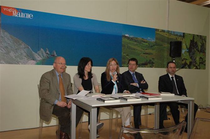 All’interno dello stand della Regione Marche, l’assessore regionale allo Sviluppo rurale e all’Alimentazione, Paolo Petrini, ha partecipato alla presentazione del libro: “Vino a doppio senso” di Stefania Zolotti e Leonardo Cemak. Un libro singolare sul vino, descritto attraverso 31 interviste a noti personaggi, maschili e femminili, delle Marche: Neri Marcorè, Giuseppe Piccioni, Dante Ferretti, Cesare Paciotti, Donatella Girombelli.