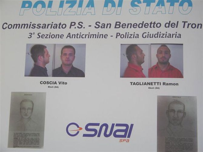 L'ordine di carcerazione è stato emesso dalla Procura presso il Tribunale di Ascoli ed è stato eseguito in collaborazione con la polizia di Battipaglia. Le indagini erano scattate nel 2001, in seguito alla rapina effettuata ai danni dell'Agenzia Snai di San Benedetto del Tronto, dove erano riusciti a sottrarre 75milioni di vecchie lire, tra contanti e oggetti di valore sottratti al titolare e a quella di Civitanova Marche per un bottino di 67 milioni sempre di vecchie lire