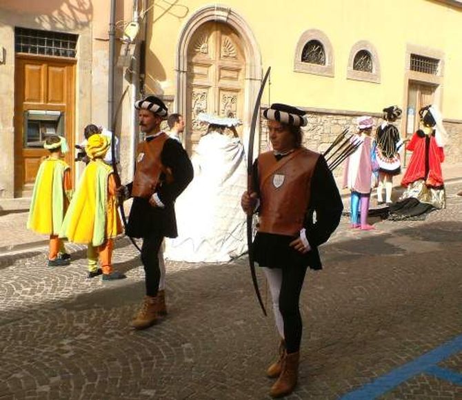 Ore 11.00 Benedizione degli arcieri sul sagrato della chiesa di S. Giovanni, consegna dei colori araldici, sfilata del corteo nel centro storico e avvio al campo di gara (Campo Sportivo).