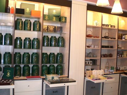 spazio espositivo dei tè allinterno del negozio Bouquet e Gourmet