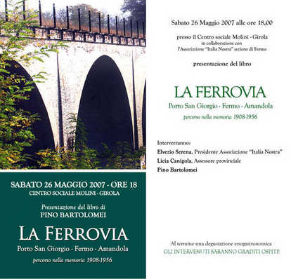 Non poteva mancare all'appuntamento del 2 marzo la sezione fermana di Italia Nostra, che ha organizzato una serie di eventi lungo il tracciato dell'antica Ferrovia Adriatico-Appennino (F.A.A.), voluta sin dal 1877, che dal 1908 al 1956 ha svolto un prezioso servizio tra le città di Porto San Giorgio e Fermo, e la valle del Tenna fino ad Amandola.