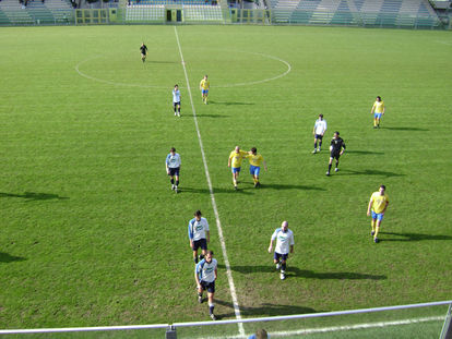 Il 4-4-2 ospite non impensierisce i canarini, che corrono dei rischi solo sui calci piazzati di Luchetti. Anzi è Crocetti, deliziosamente servito da Manca, a sciupare la palla del possibile due a zero. Primo tempo che scorre via piacevole, grazie soprattutto alle pregevoli giocate sulla corsia sinistra gialloblu del tandem Ruggeri - De Reggi.