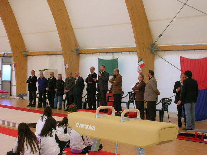 Alla cerimonia è intervenuta inoltre l’applauditissima campionessa Arianna Ciucci, che ha ammirato la struttura e dato il suo incoraggiamento a tutte le ragazze che l’hanno circondata. L’inaugurazione è stata infatti l’occasione, da parte delle due società cittadine “Ma.Mo.Ti.” e “World Sporting Academy”, di dare un saggio della bravura delle loro molte iscritte, in tante specialità diverse della ginnastica. Prove eseguite sotto gli occhi ammirati e benevoli dello stesso Pasquale Carminucci (ai due fratelli è andato il premio Truentum 2007) e di Fausto Giorgini, oltre che dei rappresentanti di varie federazioni sportive (il presidente regionale della Federazione Ginnastica d’Italia Vincenzo Garino, il presidente provinciale del Coni Aldo Sabbatucci, il giudice internazionale di ginnastica artistica Bruno Donzelli, il presidente del Comitato europeo di pattinaggio Umberto Urbinati). Il sindaco ha inoltre ringraziato il suo predecessore Martinelli e l’assessore ai Lavori pubblici della sua giunta Giovanni Poli (quest’ultimo presente stamane) per aver dato inizio alla realizzazione della tensostruttura.