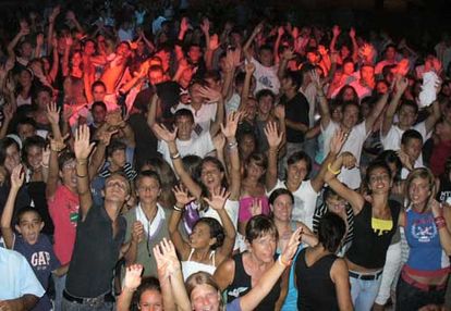 Un folto gruppo di giovani si diverte in una discoteca all'aperto (Foto d'archivio)