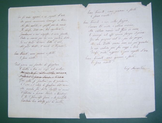 Grande soddisfazione per la Banca Picena Trentina di Ripatransone che lo scorso 18 giugno si è aggiudicata a Roma, alla casa d'aste Bloomsbury, il manoscritto originale della "Spigolatrice di Sapri", datato 1857, di Luigi Mercantini, Ripano di nascita, poeta, letterato e grande amico di Garibaldi.