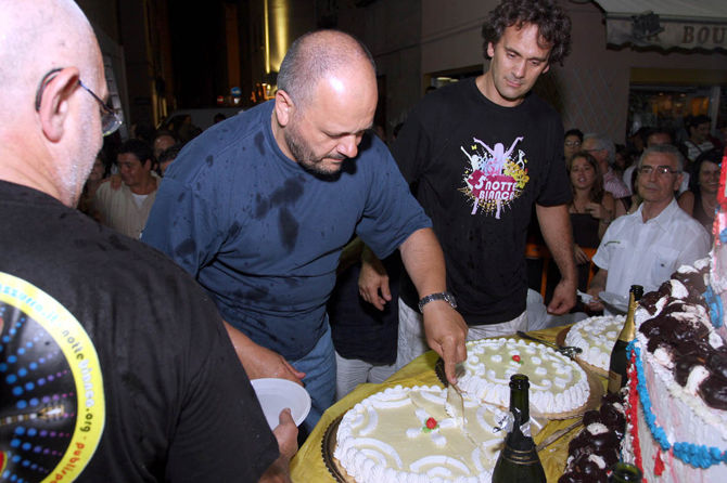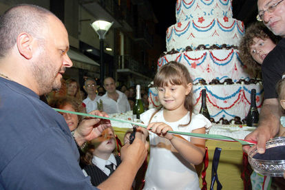 "Questa edizione mi sembra ancor più bella delle precedenti", afferma il Sindaco Giovanni Gaspari concedendosi ai taccuini dei cronisti subito dopo aver tagliato la tradizionale torta. Accanto al primo cittadino l'assessore ai Lavori Pubblici Leo Sestri ed il dirigente di Confesercenti Paolo Perazzoli.