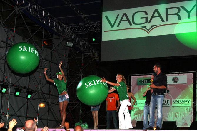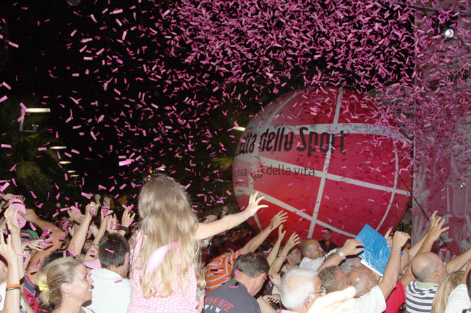 Lo staff di Radio Monte Carlo (radio ufficiale del Tour) ha organizzano un pre-show a base di cappellini, portachiavi e gadget vari, graditissimi dalla folla che li invoca a braccia alzate.