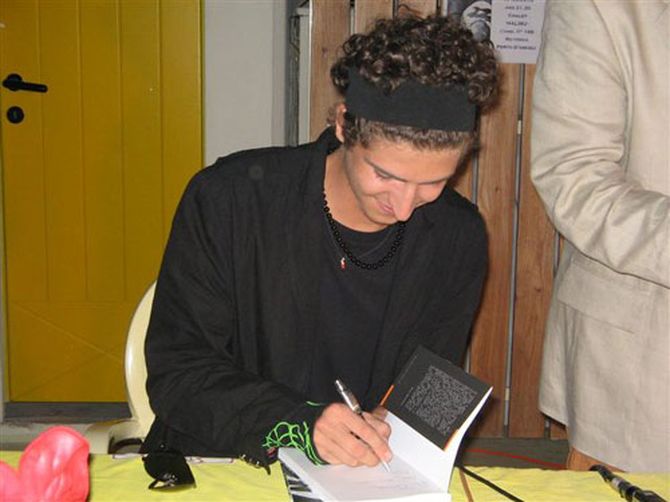 Ciò che ci colpisce dell'autore, quando finalmente prende la parola, è l'estrema serietà del suo atteggiamento, unita alla umile e sincera ricerca di un contatto autentico con gli interlocutori: non era così che qualche articolo pubblicato su di lui ce lo aveva mostrato ed è una sorpresa davvero piacevole. E' con semplicità che ci parla delle molte ore che dedica quotidianamente alla scrittura (fino a 70 pagine al giorno) e allo studio; degli esordi, incoraggiati da uno dei suoi insegnanti, il professor Osvaldo Rossi del liceo classico "Leopardi", che lo ha "iniziato" alla passione per la filosofia e sostenuto nelle prime pubblicazioni di racconti e articoli su giornali e riviste (soprattutto "Inchiostro"); delle due bocciature scolastiche.