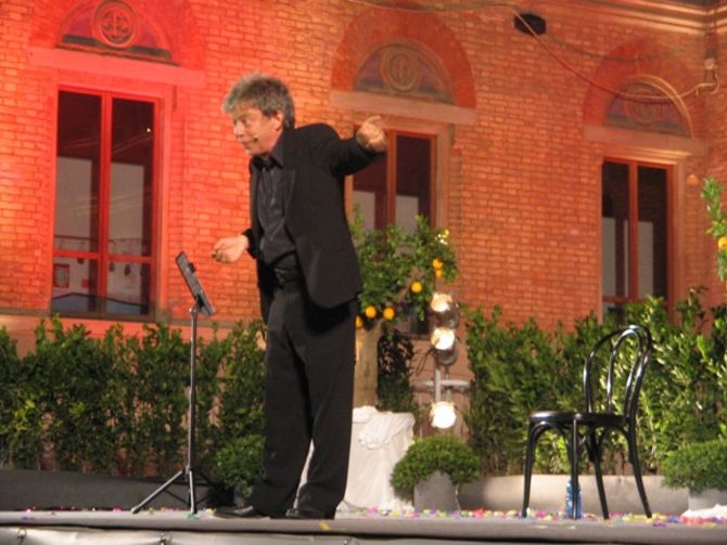 In effetti Paolo Rossi si è esibito in uno spettacolo molto interessante, anticipando un po' quello che sarà lo spettacolo della prossima stagione teatrale: un racconto comico tragico della sua vita da attore satirico.