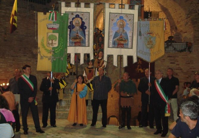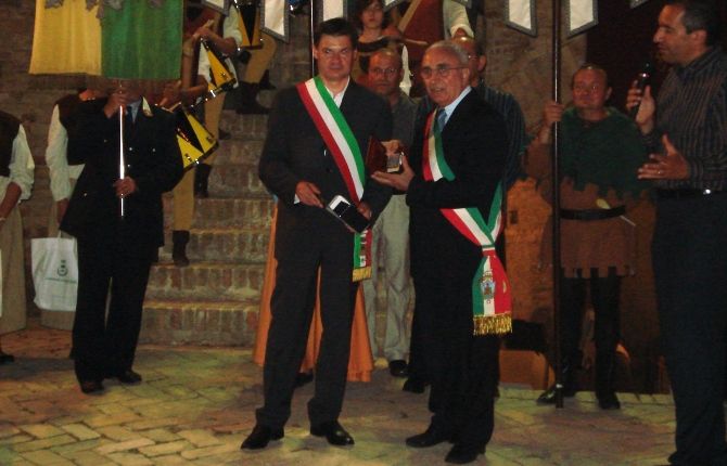 Presente al banchetto anche la delegazione di Cerreto Guidi (FI), che ogni anno chiede ad una cittadina italiana di donare il drappo per il proprio palio, il Palio del Cerro. Questa volta è stata Acquaviva a donare i due drappi e, come annunciato dal sindaco Tarcisio Infriccioli "Nascerà sicuramente un gemellaggio tra le due cittadine". Scambio anche di doni, prodotti tipice dei luoghi, tra Infriccioli e il sindaco di Cerreto Carlo Tempesti e il presidente della ProLoco di quest'ultima, Danilo Mengoni, a sancire un sodalizio non solo tra due città, ma tra due storie del passato così vicine tra loro.