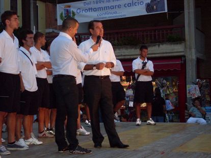 Proprio nei pressi del botteghino preposto per gli abbonamenti incontriamo la squadra del Grottammare al completo ed in particolare il nuovo direttore tecnico Rosario Scarfone: "ci aspetta un campionato difficile, la squadra mira a lavorare molto per raggiungere risultati soddisfacenti. Si è creato già un gruppo coeso difatti non ci sono prime donne, e la società punta alla formazione dei giovani".