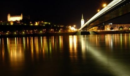 Una veduta notturna di Bratislava