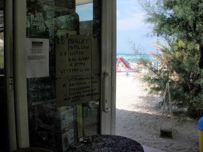 "Lo chalet Papillon la notte del 14 agosto è stato vittima di un atto vandalico". Recita così un cartellone affisso dai proprietari del ristorante e stabilimento balneare elpidiense all'ingresso per giustificare il massiccio spostamento di avventori con una sistemazione d'emergenza degli ombrelloni nella settimana cruciale della stagione estiva. Gli episodi si riferiscono alla notte di ferragosto. Venticinque gli ombrelloni fracassati, oggetti lasciati accanto ai lettini dai clienti dello chalet portati via e bruciati per alimentare il falò, delimitazioni della concessione balneare distrutte.