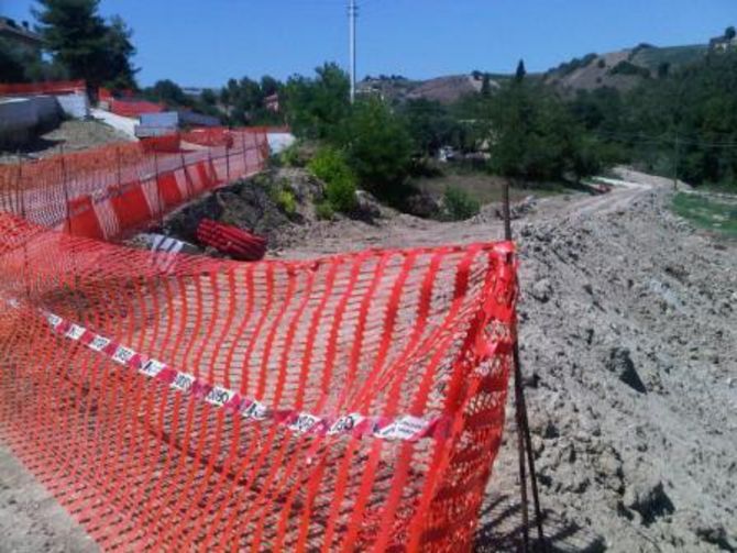 Abbiamo monitorato periodicamente l'evolversi dei lavori, che ci sembra stiano andando avanti positivamente. Non possiamo però esprimere alcuni preoccupanti dubbi su alcuni aspetti: le bretelle sono state realizzate ma non approntate in tempo (Come si può dedurre dalle foto quella a nord è ancora in terra mentre l'altra è stata brecciata con depolverizzazione, che alla prima pioggia causerà inevitabilmente fango e affossamenti); la parte centrale, dalla cantina De Angelis all'agriturismo, è stata anch'essa depolverizzata con 2 cm di brecciolino e asfalto liquido, su terra battuta; il ponte allargato in zona Valentino è stato rifatto con argini di protezione Jersey in plastica, assolutamente pericolosi senza guardrail.