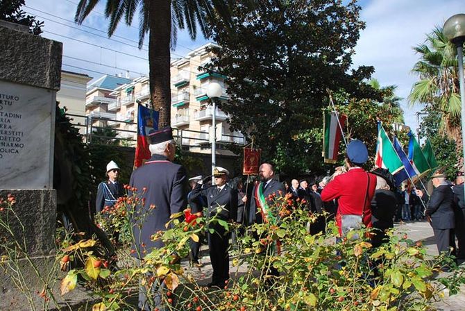 Dopo aver omaggiato coloro che hanno dato la vita per l'Italia con la deposizione delle corone presso la sede dell'Associazione Nazionale Marinai d'Italia e i monumenti ai caduti di viale Secondo Moretti, il corteo si è diretto verso la scuola "Sacconi". Ad accogliere le autorità gli studenti delle classi terze che hanno ringraziato il Sindaco Giovanni Gaspari per l'opportunità formativa offerta alla scuola di celebrare nell'istituto la ricorrenza con la lezione di un professore universitario ed eseguendo l'Inno di Mameli.