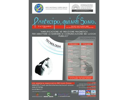 Un primato incorniciato da un Convegno Informativo, Conoscitivo sulla Amplificazione ad Induzione Magnetica, tecnologia che migliora la qualità di ascolto nei luoghi pubblici a persone sorde protesizzate (protesi acustiche o portatori di Impianto cocleare) e ipoudenti (con e senza protesi). A loro,come potenziali beneficiari, e ai medici di base, agli otorini,agli audioprotesisti,agli amministratori locali, agli operatori religiosi e turistici è rivolta la giornata dell’8 novembre, che cercherà di rispondere agli interrogativi su questa tecnologia invisibile, poco conosciuta in Italia, ma efficace. Infine, per creare presupposti culturali solidi alla replicabilità dell’iniziativa, la giornata del 9 novembre è rivolta prevalentemente a Tecnici, Amministratori locali, Progettisti, Architetti, Ingegneri Elettronici, Tecnici del suono: “L’Amplificazione ad Induzione Magnetica in Italia e all’Estero: racconti di buone prassi per “progettare accessibile” .Nel corso della mattinata, queste categorie potranno sperimentare la sordità in un itinerario urbano, grazie alla collaborazione dell’Ente Nazionale Sordi di Ascoli all’interno dell’iniziativa “Una città per tutti”, promossa dal Gruppo di Lavoro sull’Accessibilità dell’Ordine degli Architetti della Provincia di Ascoli.