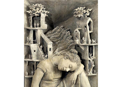 Uomini e donne di mare, onde, sabbie e scogli e città costiere. Paolo Annibali nella sua mostra al Museo Omero “DIRÀ L’ARGILLA La mano, la terra, il sacro”, ci porta nella sua San Benedetto del Tronto, alle spiagge dell’infanzia trascorsa tra barche e reti al sole. Episodi di vita quotidiana, di gente semplice e forte. Un brulicare di storie, a volte frenetico, a volte intimo, raccontato nei suoi teatri in terracotta come “Bambina che sogna il mare”, “Fin dove si tocca” e nei suoi intensi disegni a china “Costa Adriatica”, “ Mare e destini”.